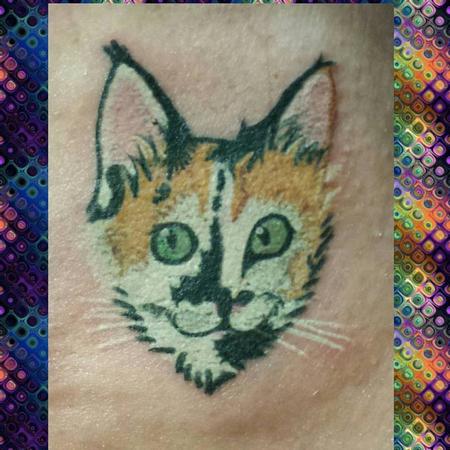 Small 3.5'x3.5' simplified Calico cat head illustrative portrait